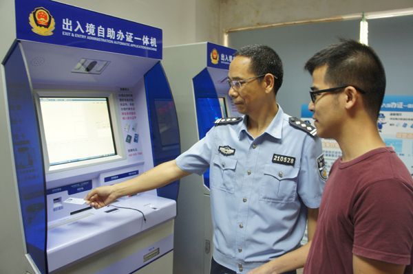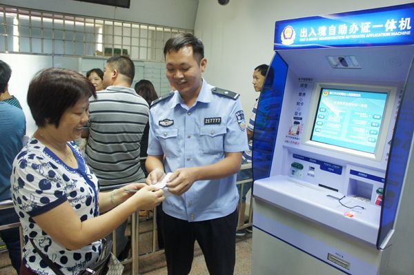 为落实20项“广东公安改革惠民举措”,实现便民利民服务水平的新跨越,我市各县(市、区)出入境窗口单位共安装了17台自助办证一体机,并于10月28日统一投入使用。