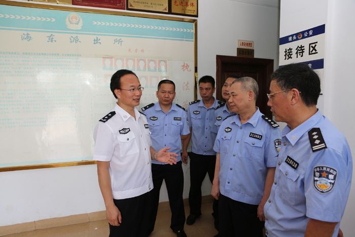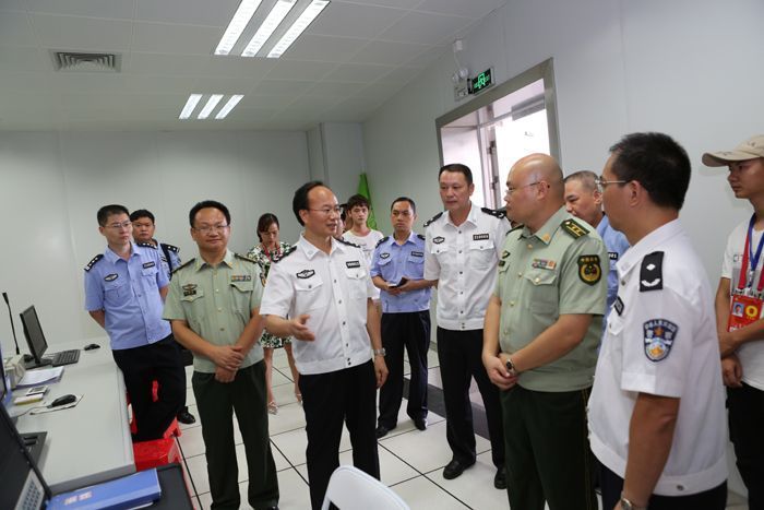 徐文海同志一行先后到赤坎分局刑警大队、民主派出所,坡头分局海东、坡头派出所,消防支队,海东消防中队,奥体中心,了解“断流”、“3+2”专项行动和夏季消防安全工作进展情况,对执法办案场所、案管中心建设等工作进行具体指导,并召开全市、赤坎和坡头两级公安机关重点专项工作汇报会。在听取有关工作汇报后,他充分肯定我市在“断流”、“3+2”专项行动和夏季消防安全等方面所取得的工作成绩,强调,要贯彻落实全省公安机关“断流”行动第2次点评电视电话会议精神,以全市5个省际公安检查站和“视频+门禁”系统为抓手,落实24小时“逢车必查”、大排查、大管控等重点工作,严防死守,全力抓好“断流”行动冲刺阶段工作,夺取我市反恐安保工作的全面胜利。要贯彻落实省厅“8·13”紧急视频会议精神,时刻绷紧安全生产这根弦,吸取天津市滨海新区“8·12”特大爆炸事故经验教训,结合夏季消防安全的部署,以省运闭幕式消防工作万无一失为目标,落实责任,对危化易燃易爆仓库、重点运输企业等重点部位、行业专项督导,防止各类重点人员捣乱滋事,努力营造安全和谐的生产工作环境;同时,注重总结、提炼责任捆绑、造册管理等消防安全生产的好经验、好做法,着手建立权责明晰、责任到位、分类管理的消防安全生产长效机制。