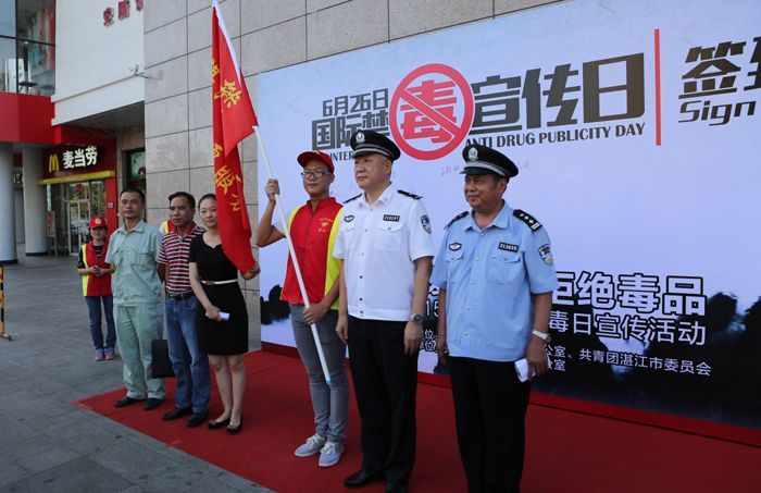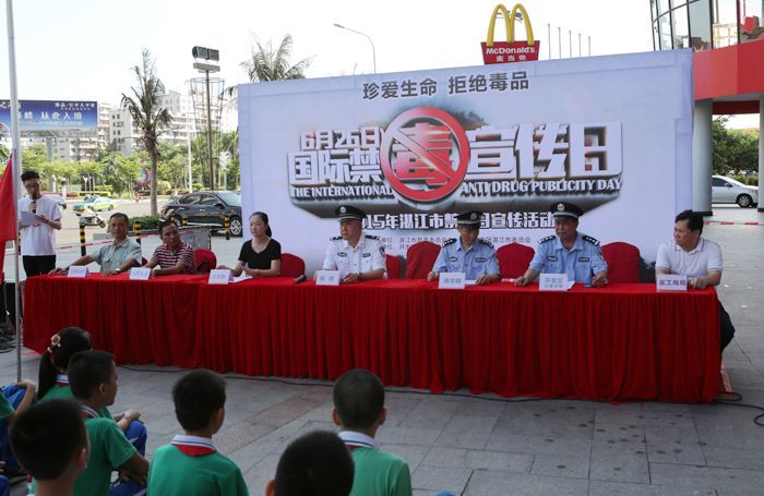 今年6月26日是第28个国际禁毒日。当天,湛江市禁毒办、共青团湛江市委联合市公安局和开发区禁毒办、开发区检察院、法院、公安分局,区教育、文化、工商、共青团等单位在荣基国际广场举办以“珍爱生命、远离毒品”为主题的青少年禁毒宣传教育活动。