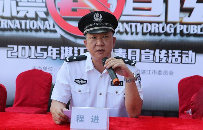 湛江市禁毒委副主任、禁毒办主任、市公安局副局长程进在宣传教育活动现场指出,青少年禁毒工作要把毒品预防作为学校德育教育的一项重要内容,纳入学校教育工作计划,使毒品预防教育工作有计划、有组织地进行,做到“五到”(即认识到位、领导到位、人员到位、措施到位和保障到位)和“四有”(即空中有声音、手中有资料、墙上有标语图片、活动有计划组织),达到“学生不吸毒,校园无毒品”目标,实现“教育好一个学生,带动一个家庭,影响一个社区,造福一方人民”的社会效益。具体措施上,要组织开展好“八个一”行动,即:聘任1名法制副校长、配备1套禁毒教学教案、组织1次主题班会、开展1次禁毒实践教育活动、撰写1篇心得体会、出版1期墙报、签置1份家长禁毒责任书、开展1次校园周边净化行动。同时,各单位要充分整合社工及志愿者等力量,组建禁毒志愿者队伍,共同参与禁毒宣传教育工作。活动现场,程进向禁毒志愿者代表授旗,并宣布启动自行车巡回游行宣传。
