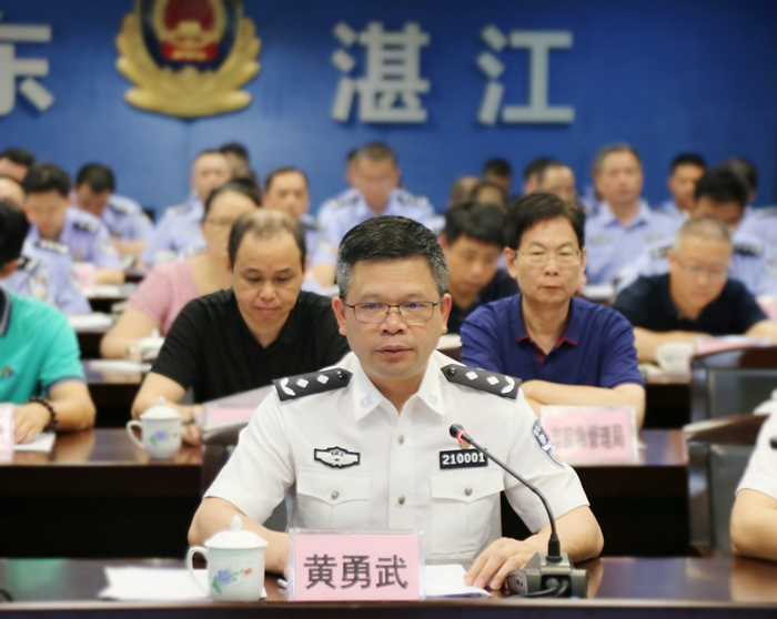 会议由市公安局党委委员、副局长何浩仲主持,市局党委委员、副局长骆宏昭同志通报了上半年打击整治枪爆违法犯罪工作情况并解读了涉枪重点整治工作方案;徐闻县副县长、公安局长于庆功同志作了表态发言。