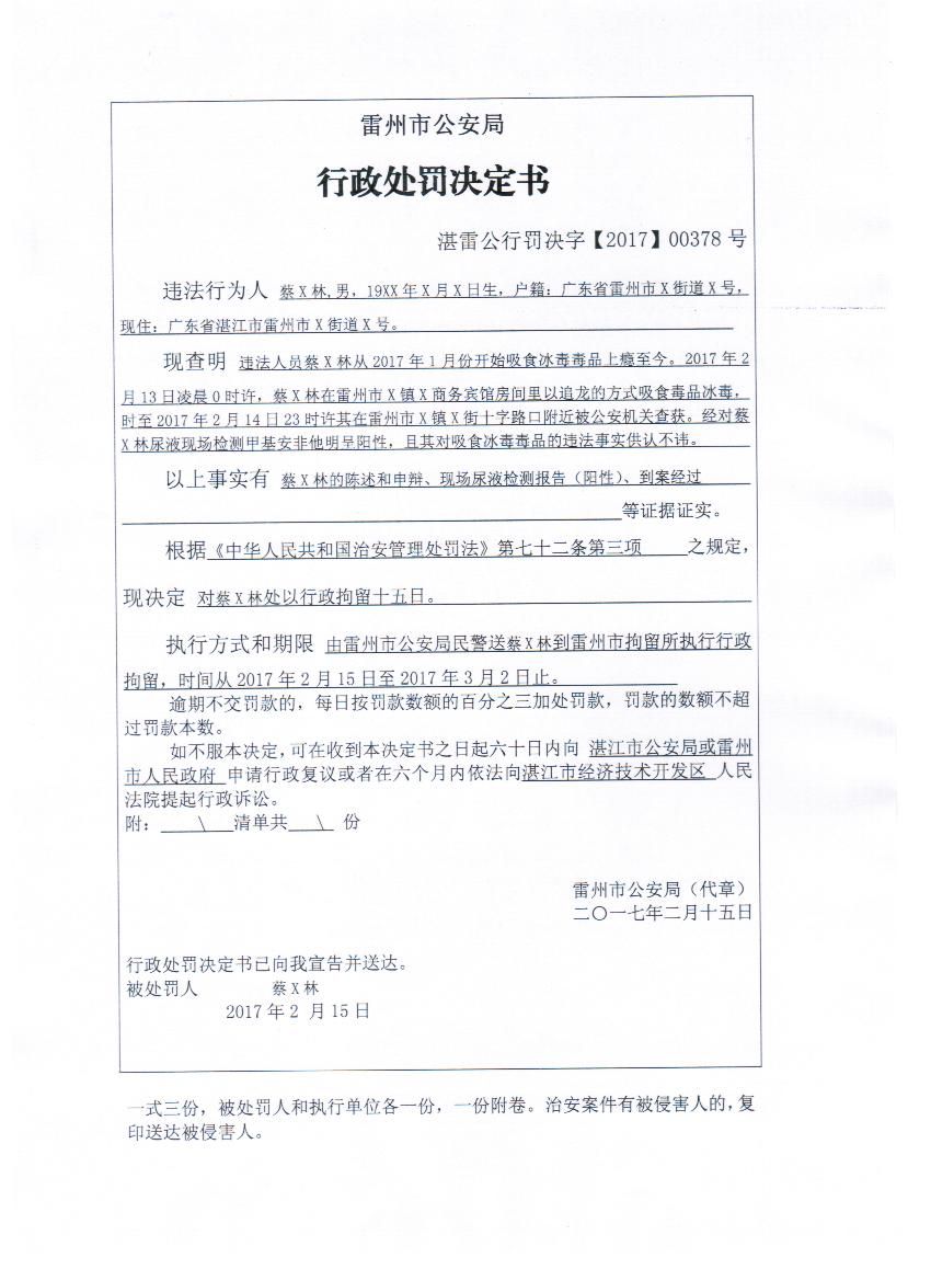 蔡X林行政处罚决定书公开