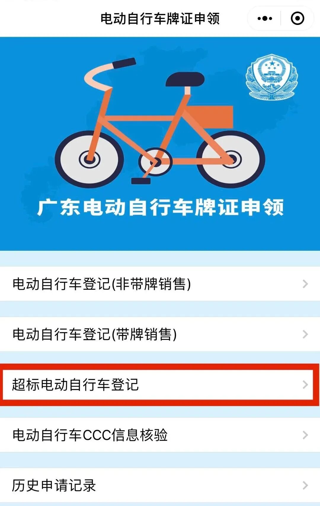 ▶办理流程:①车主登录“广东电动自行车牌证申领”微信小程序→②点击“超标电动自行车登记”进入,按照系统提示,录入车辆所有人及车辆信息→③按提示上传所需资料及车辆照片→④系统随机确定车辆号牌号码→⑤在线支付牌证工本费→⑥后台工作人员审核制证→⑦发放号牌(邮寄或自取)。